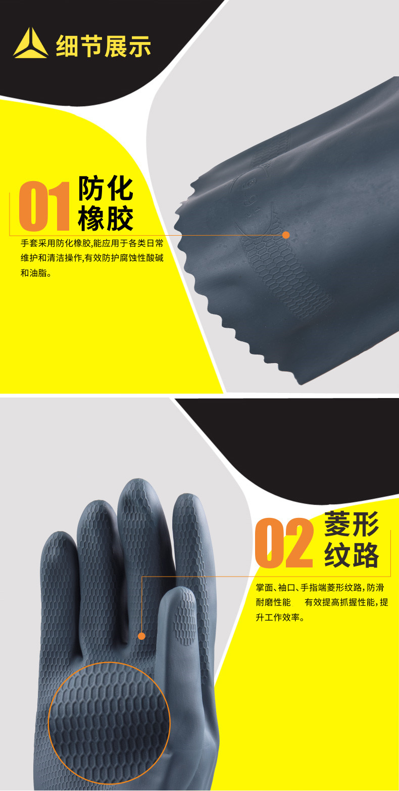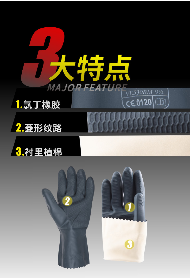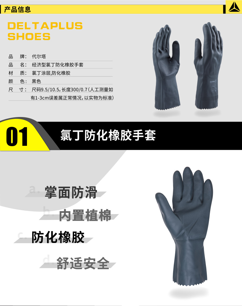 | 代尔塔 氯丁橡胶乳胶防护手套 耐磨耐油耐热 防化学品201530 |
