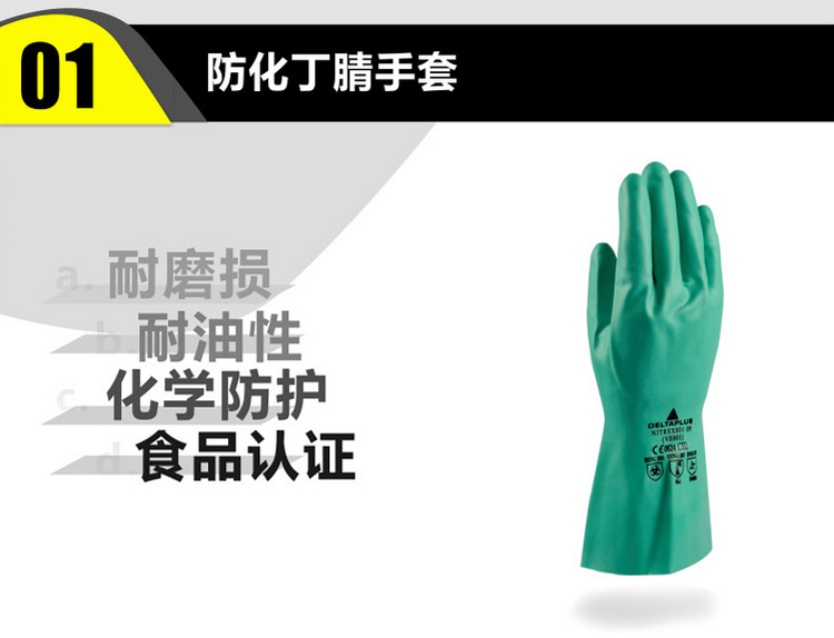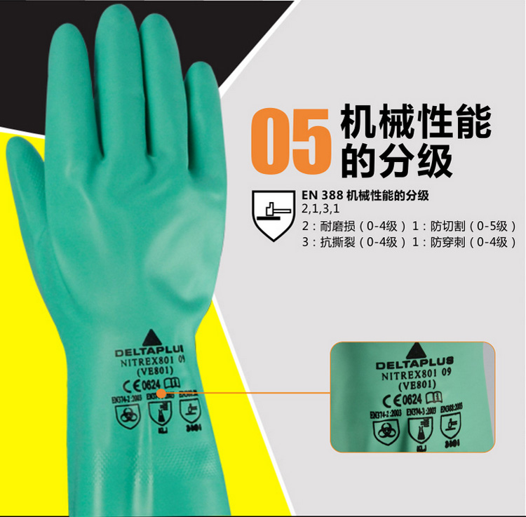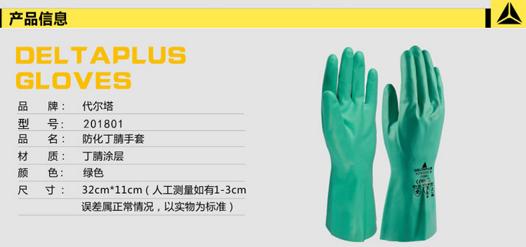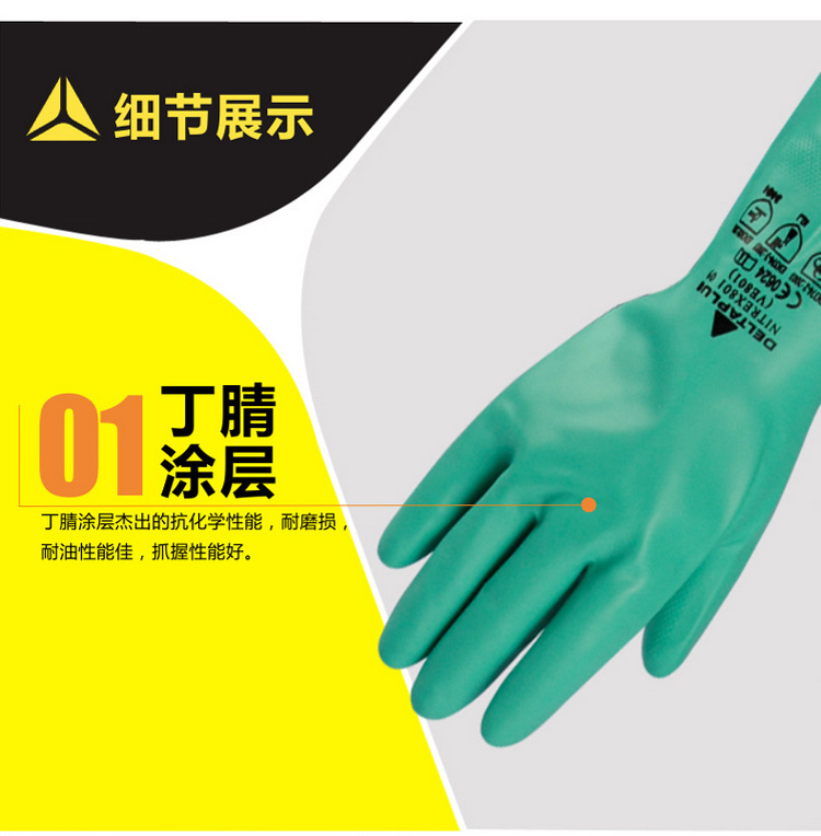 | 代尔塔 201801丁腈防化手套食品劳保工作手套耐磨耐油耐酸碱 |