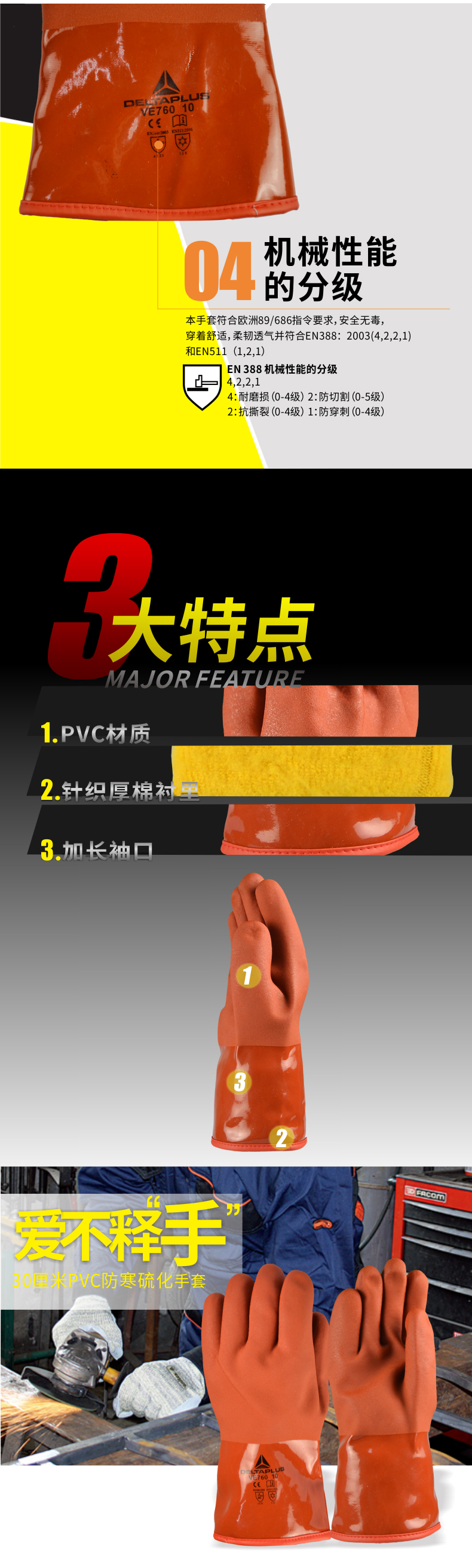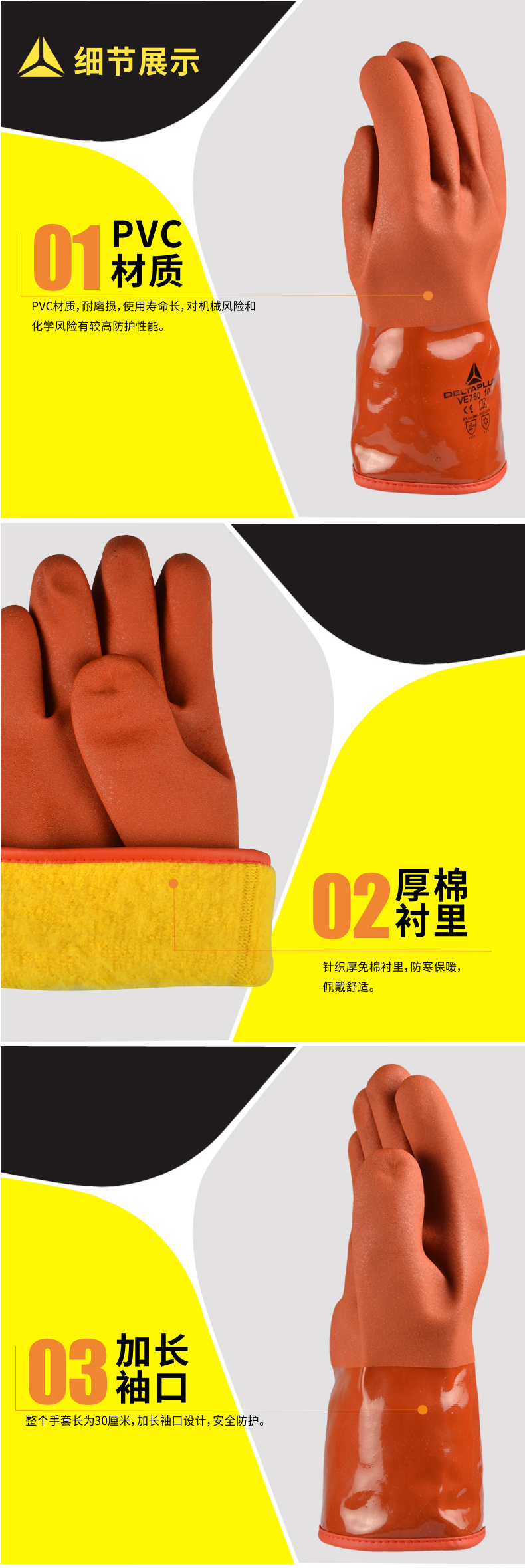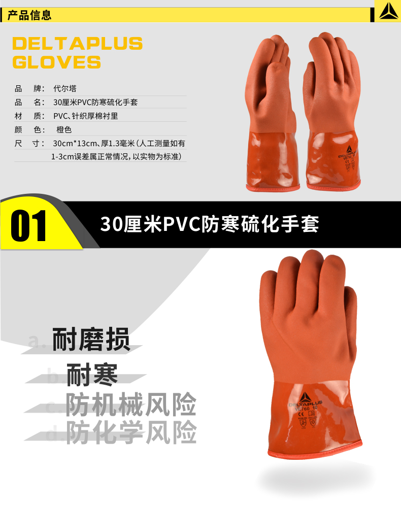 | 代尔塔 30厘米PVC防寒硫化手套耐磨损 耐寒 201760 |