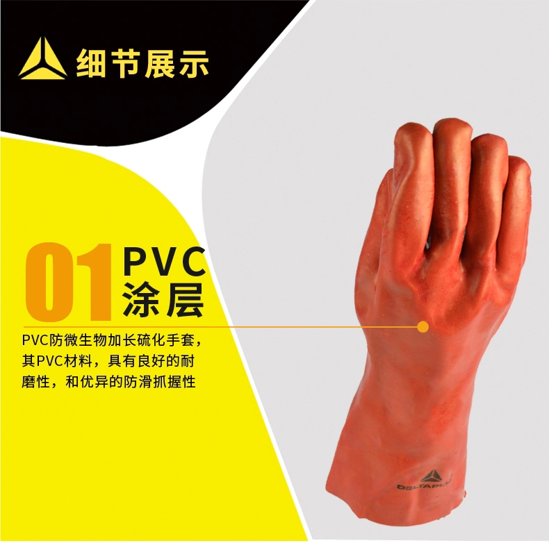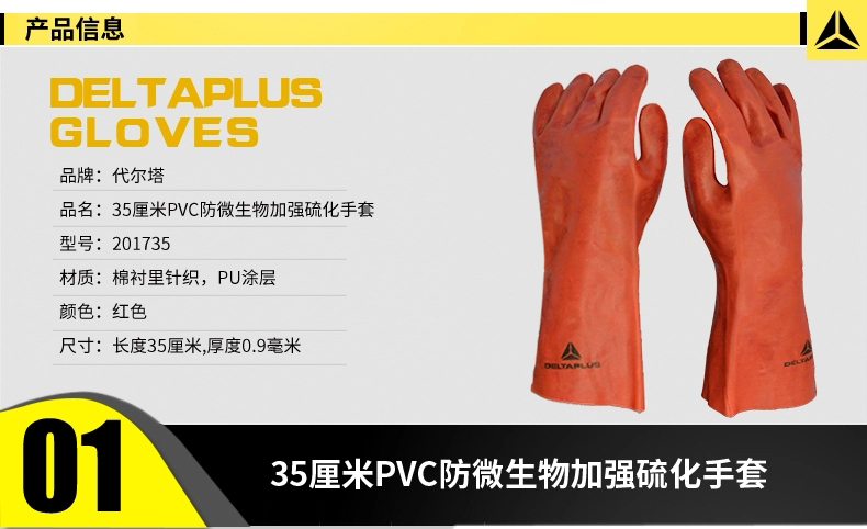 | 代尔塔201735手套PVC涂层防化防滑耐酸性防腐蚀工业劳保手套35CM |
