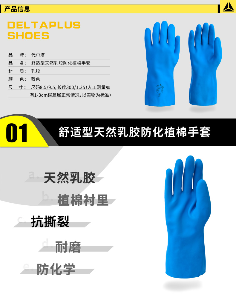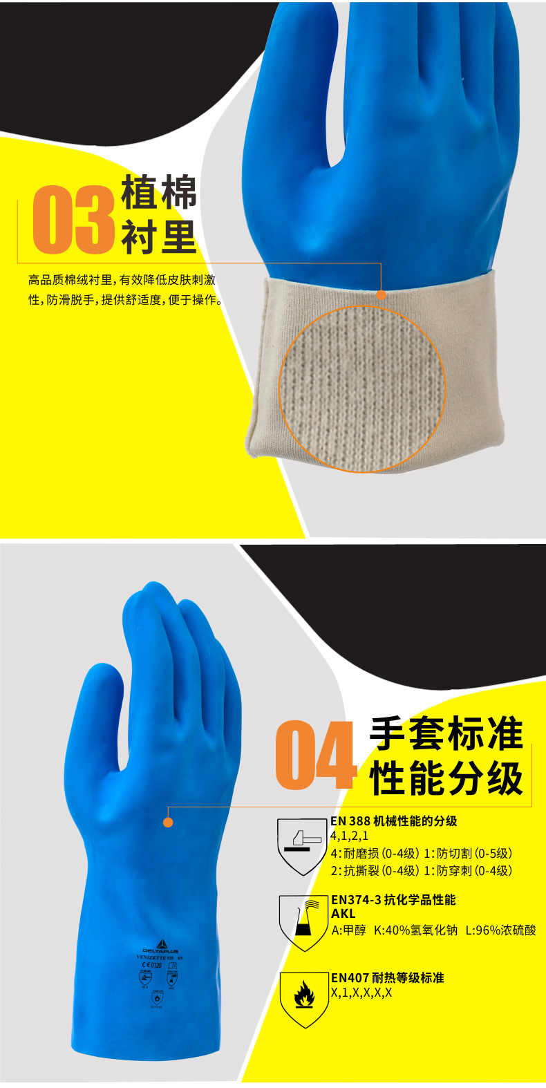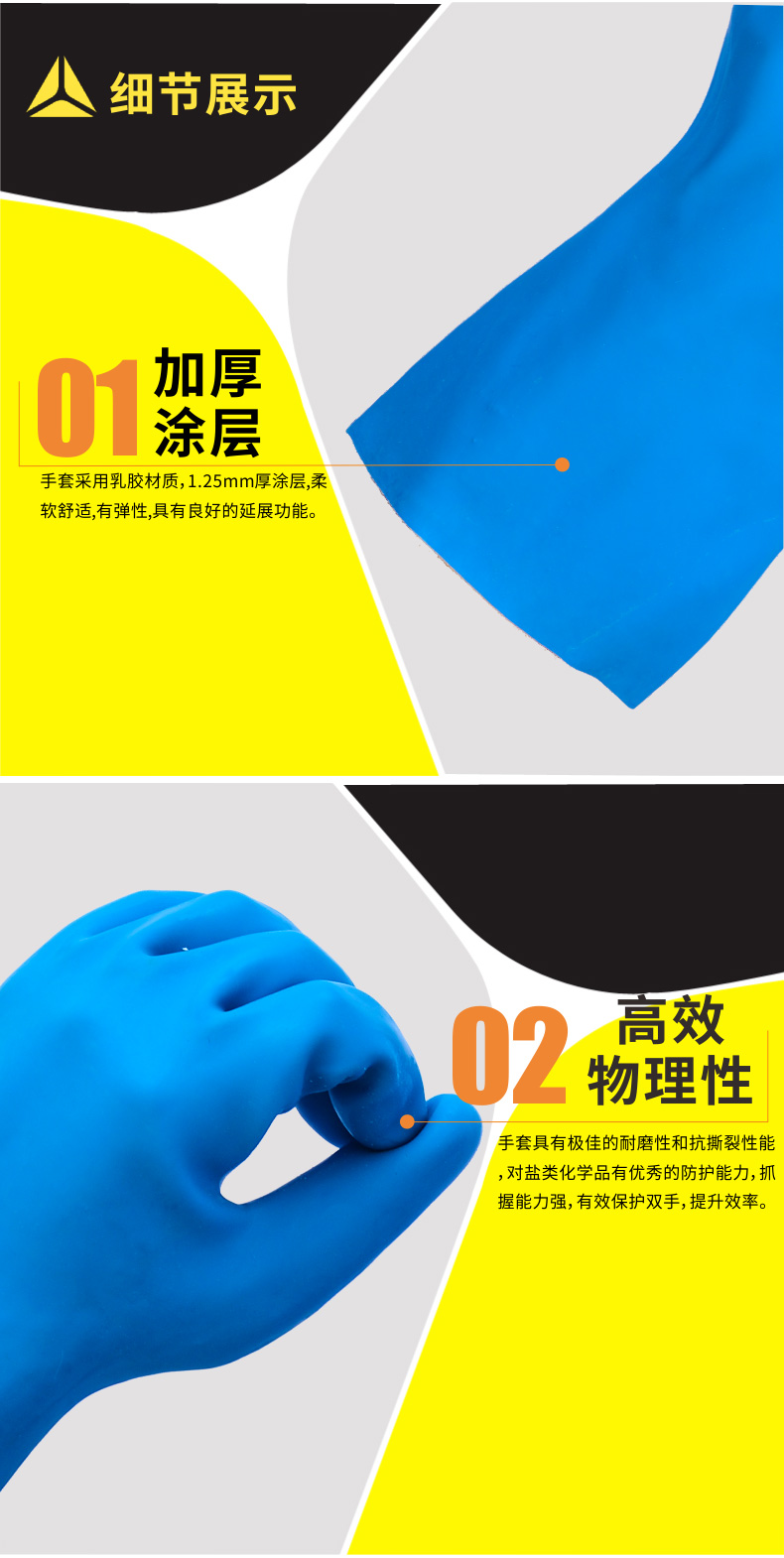 | 代尔塔 天然乳胶防化手套 防撕裂性能佳耐磨 耐高温100℃ 201920 |