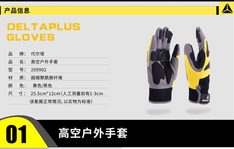 | 代尔塔209902高空户外运动手套耐磨防护透气舒适安全骑行防水 |