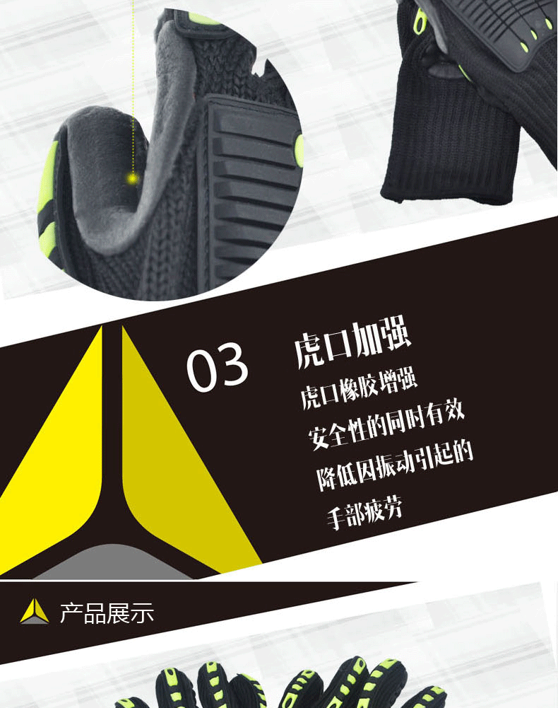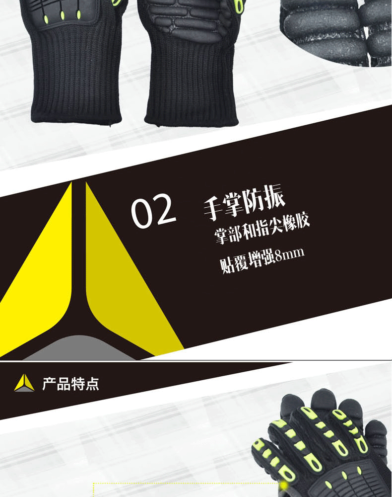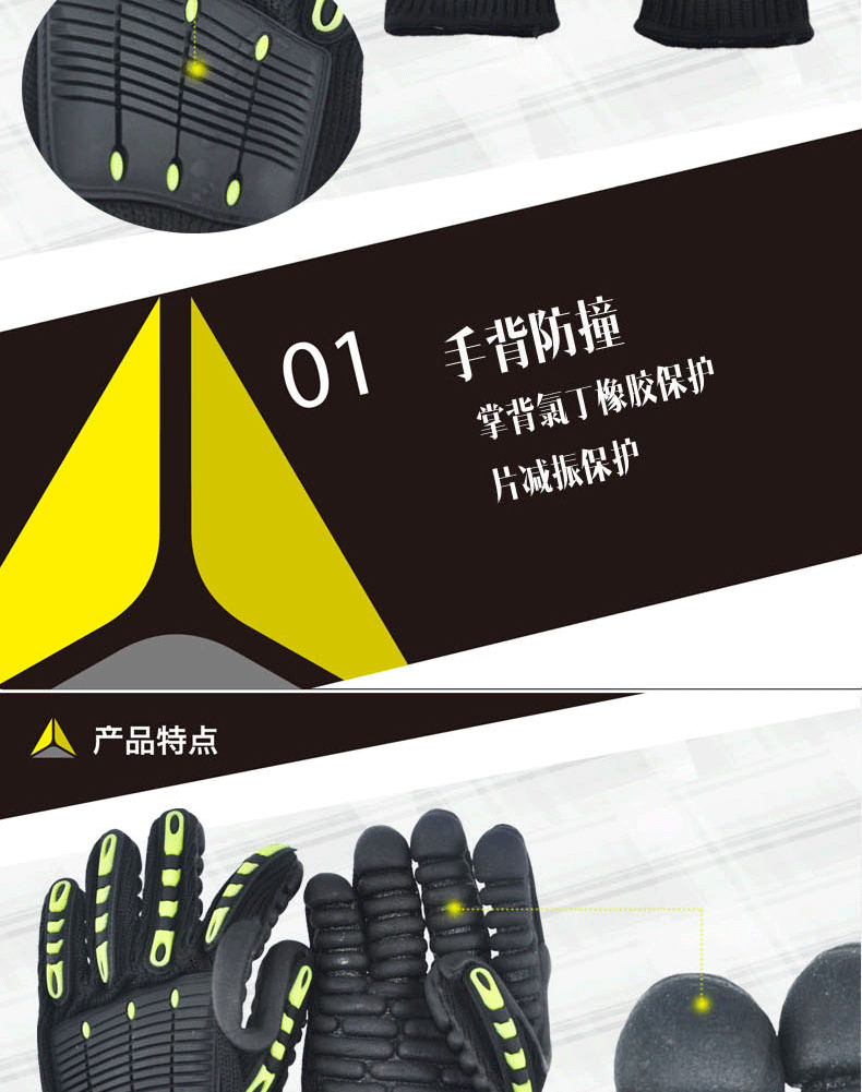 1、掌背氯丁橡胶保护,手掌防振,减振保护