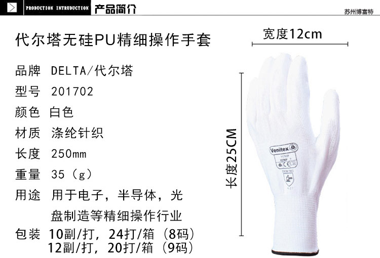 | 代尔塔手套 无硅PU精细操作手套 劳保防护尼龙针织手套201702 |