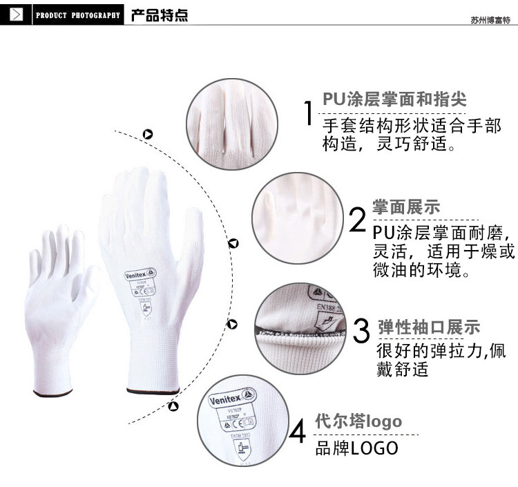 1、PU涂层,掌面带有纹路,耐磨性能及抓握能力好