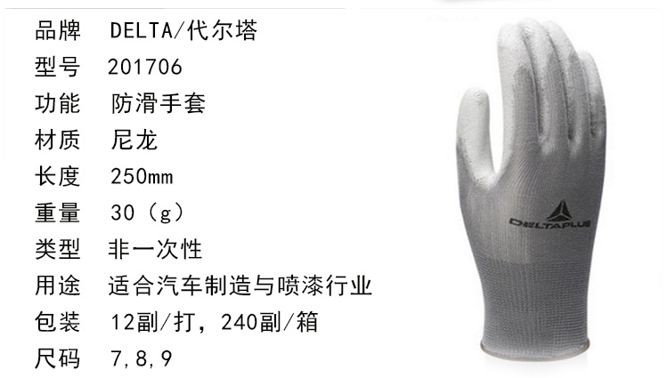 | 代尔塔201706劳保手套工作针织手套PU涂层手套尼龙手套 喷漆手套 |