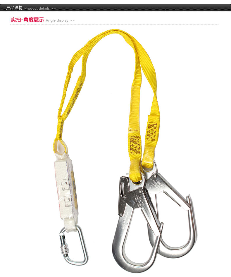 双缓冲系带,配有2个脚手架挂钩和1个安全钩,1.2m;