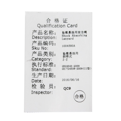 吸收部分冲击能量,缓冲系绳必须和一套完整的防坠落装置配合使用。