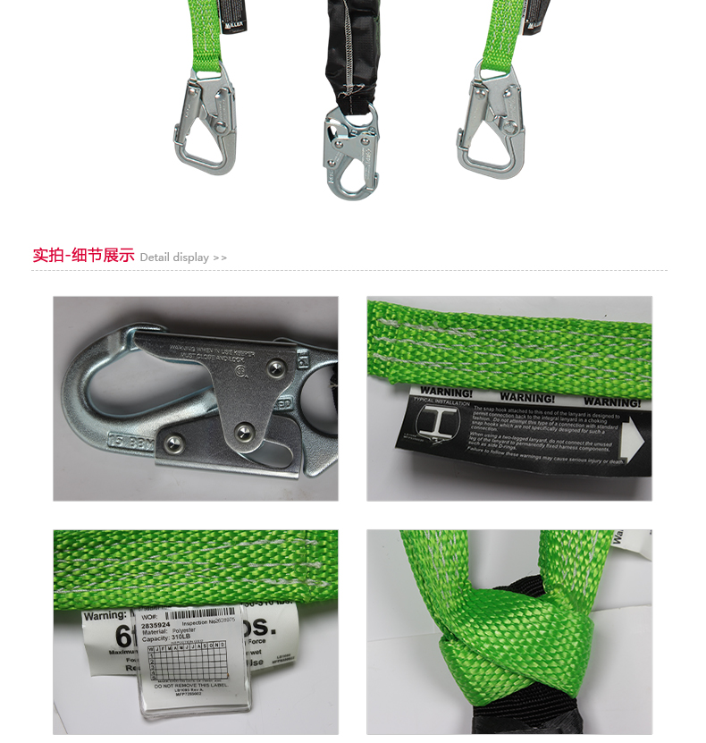 吸收部分冲击能量,缓冲系绳必须和一套完整的防坠落装置配合使用。