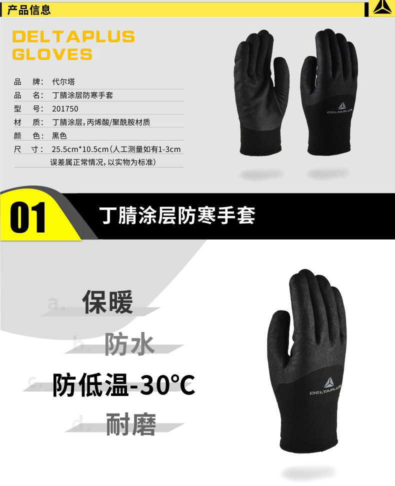 | 代尔塔 201750 涂层防寒手套防护手套保暖手套劳保手套 |