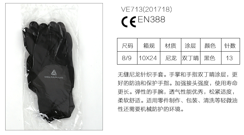 | 代尔塔201718油污机械操作手套 防油耐磨损抗撕裂防穿刺防护手套 |
