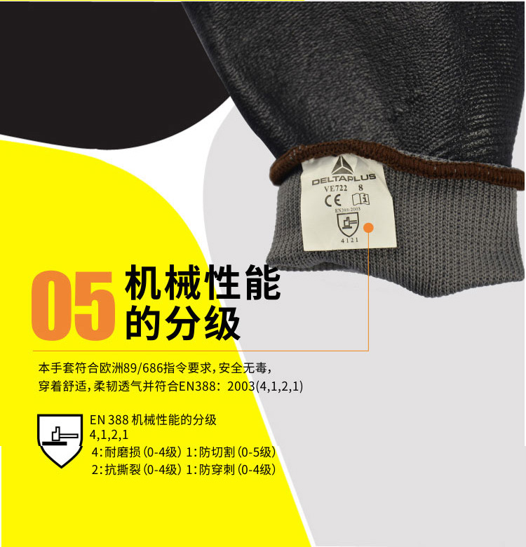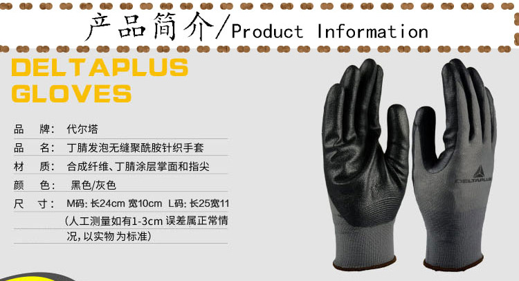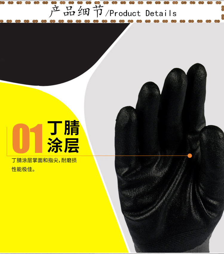 1、掌面和手指丁腈涂层,耐磨性能好