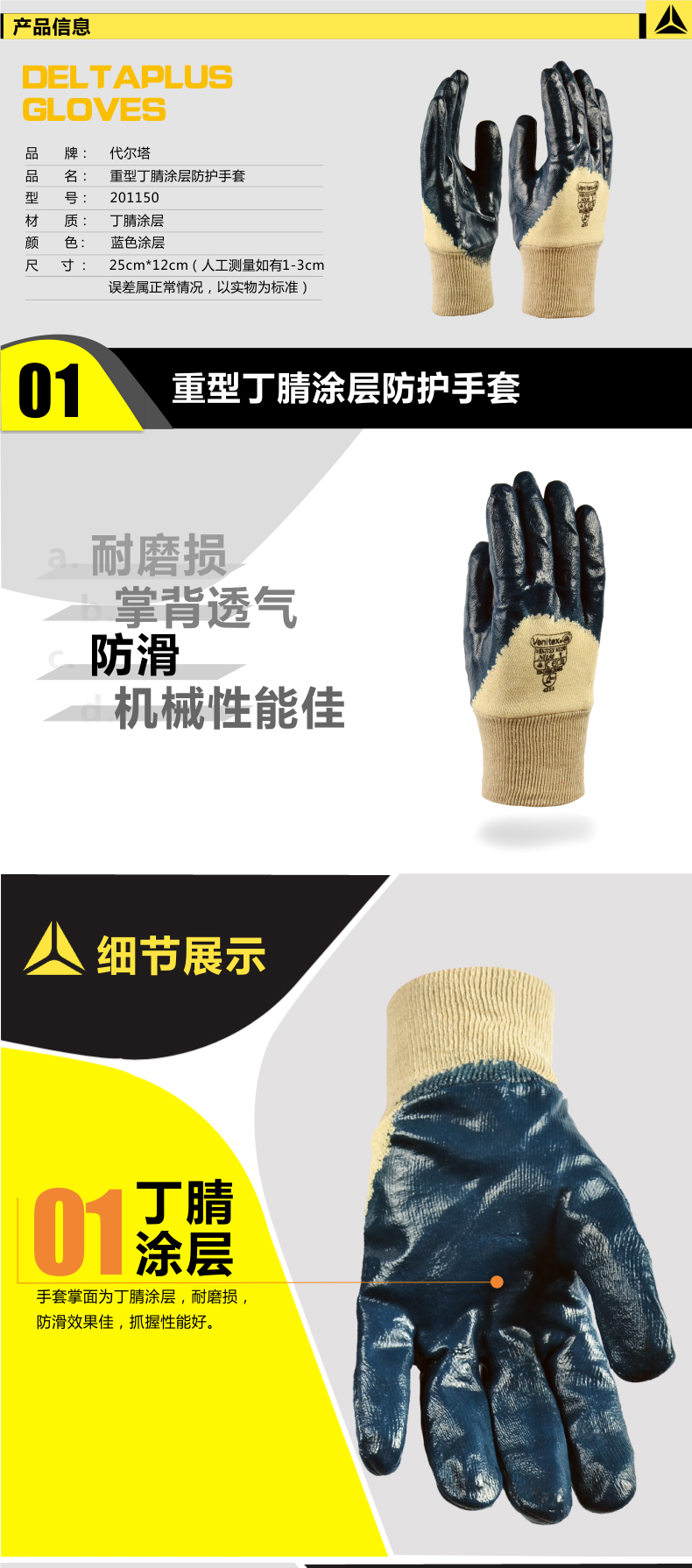 | 代尔塔 重型丁腈涂层防护手套 耐油防热接触 201150 |