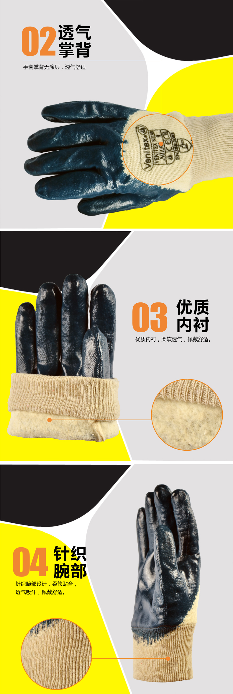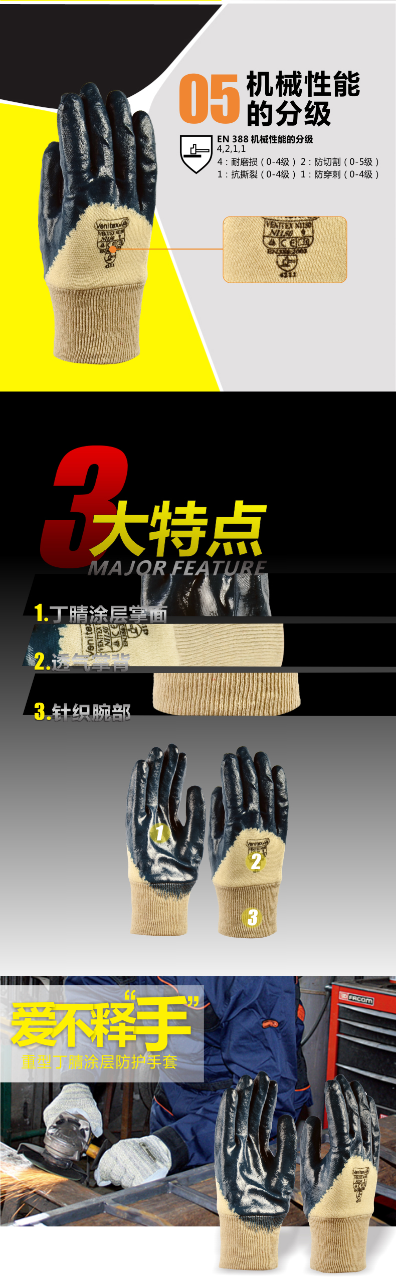 1、手掌丁腈涂层,耐摩擦,防滑,抓握性能好