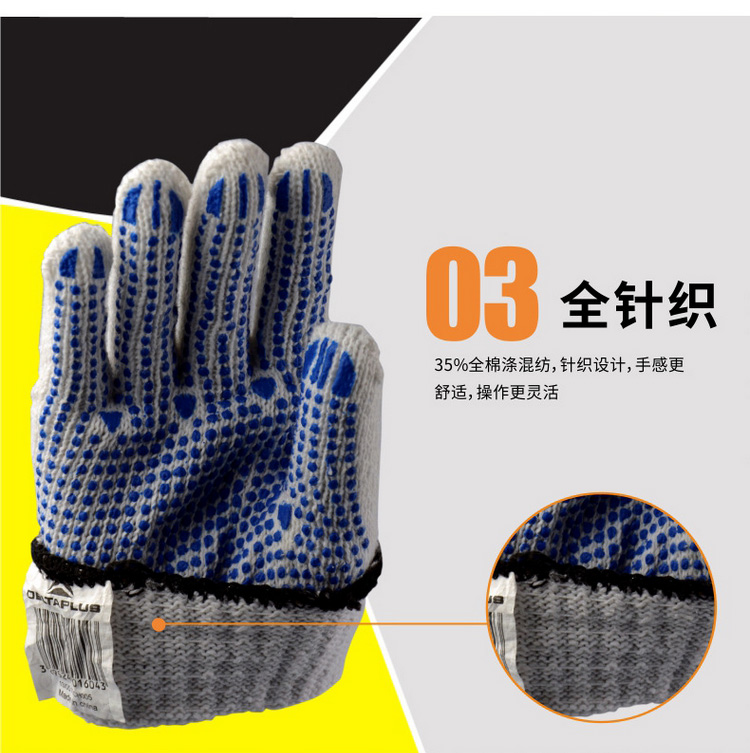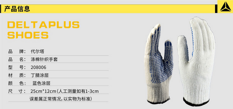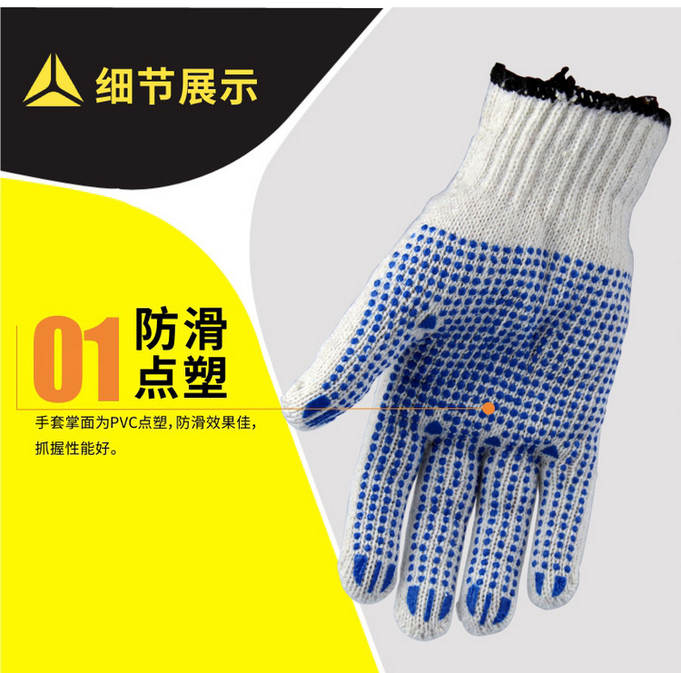 | 代尔塔208006针织手套 工作劳保手套透气PVC点塑防滑耐磨舒适 |