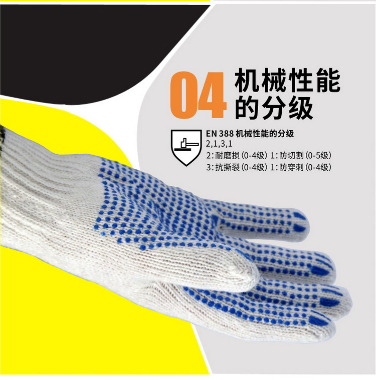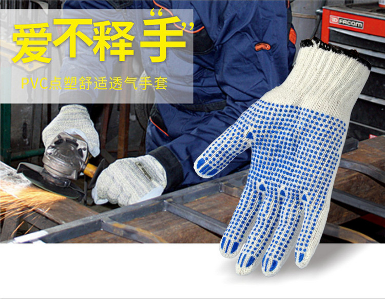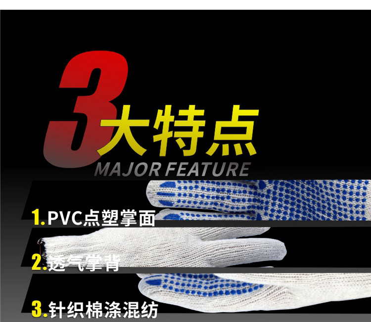 1、手套掌面为PVC点塑,防滑效果好,抓握效果好