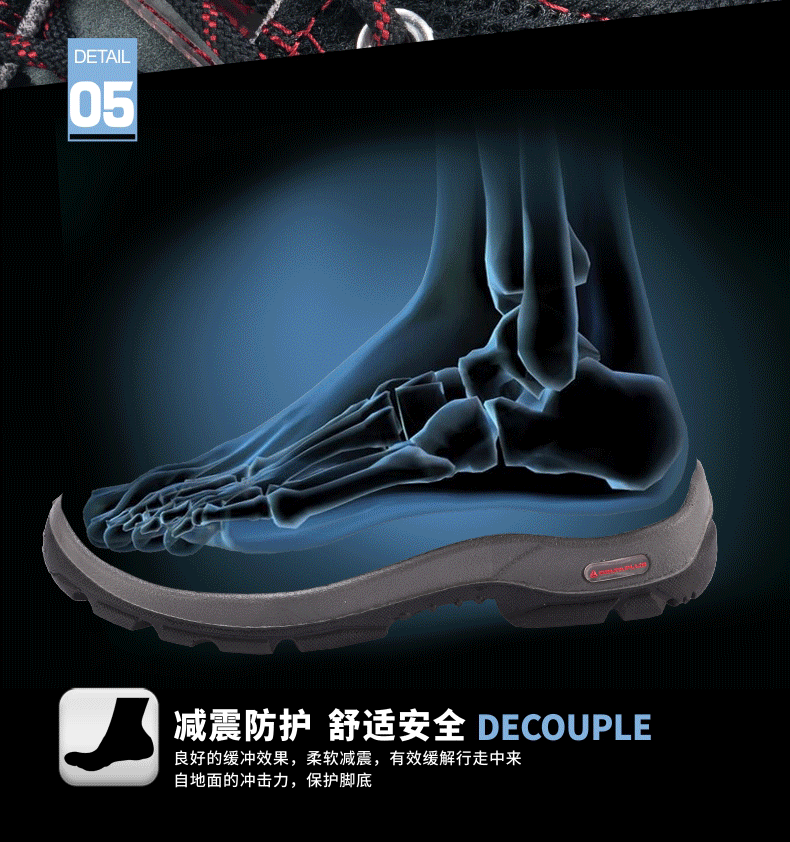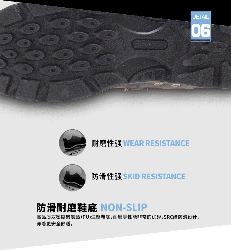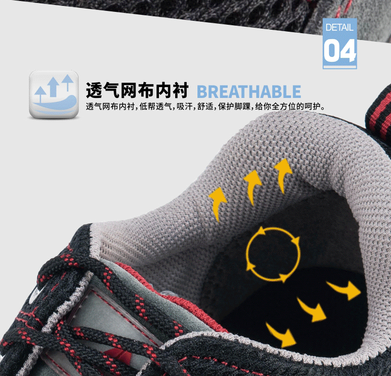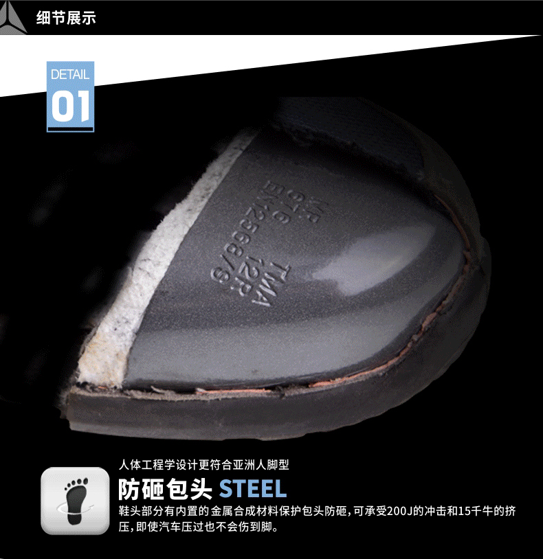 1、防砸包头,符合人体工学设计,鞋底减震防护,舒适安全