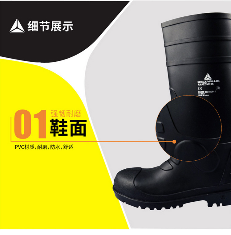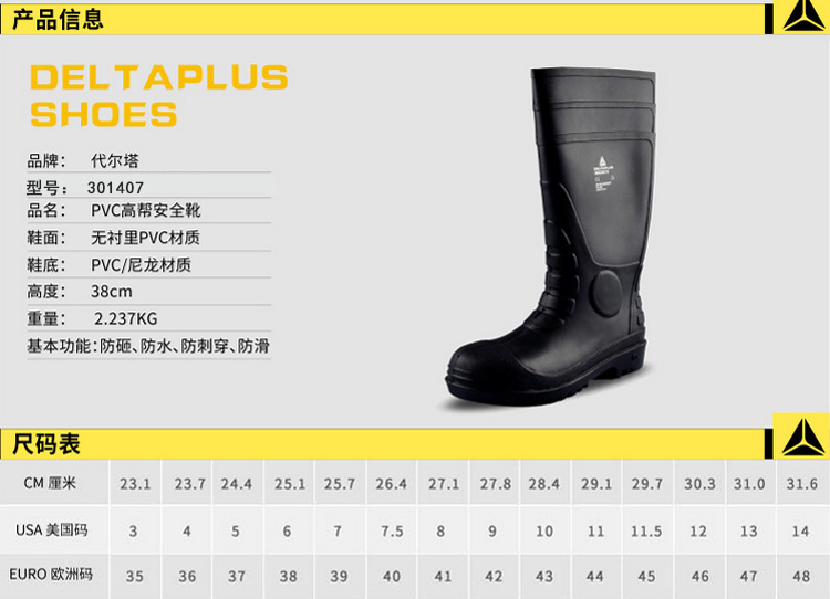 | 代尔塔301407防化靴防砸防刺穿耐酸碱防水工作雨鞋防滑雨靴 |