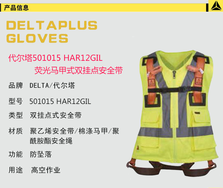 | 代尔塔501015马甲式双挂点快速接口安全带坠落防护高空作业 |