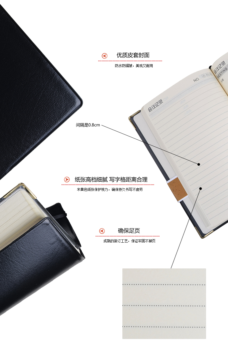 优质皮套封面,会议专用内芯设计,金色包边,高档耐用。