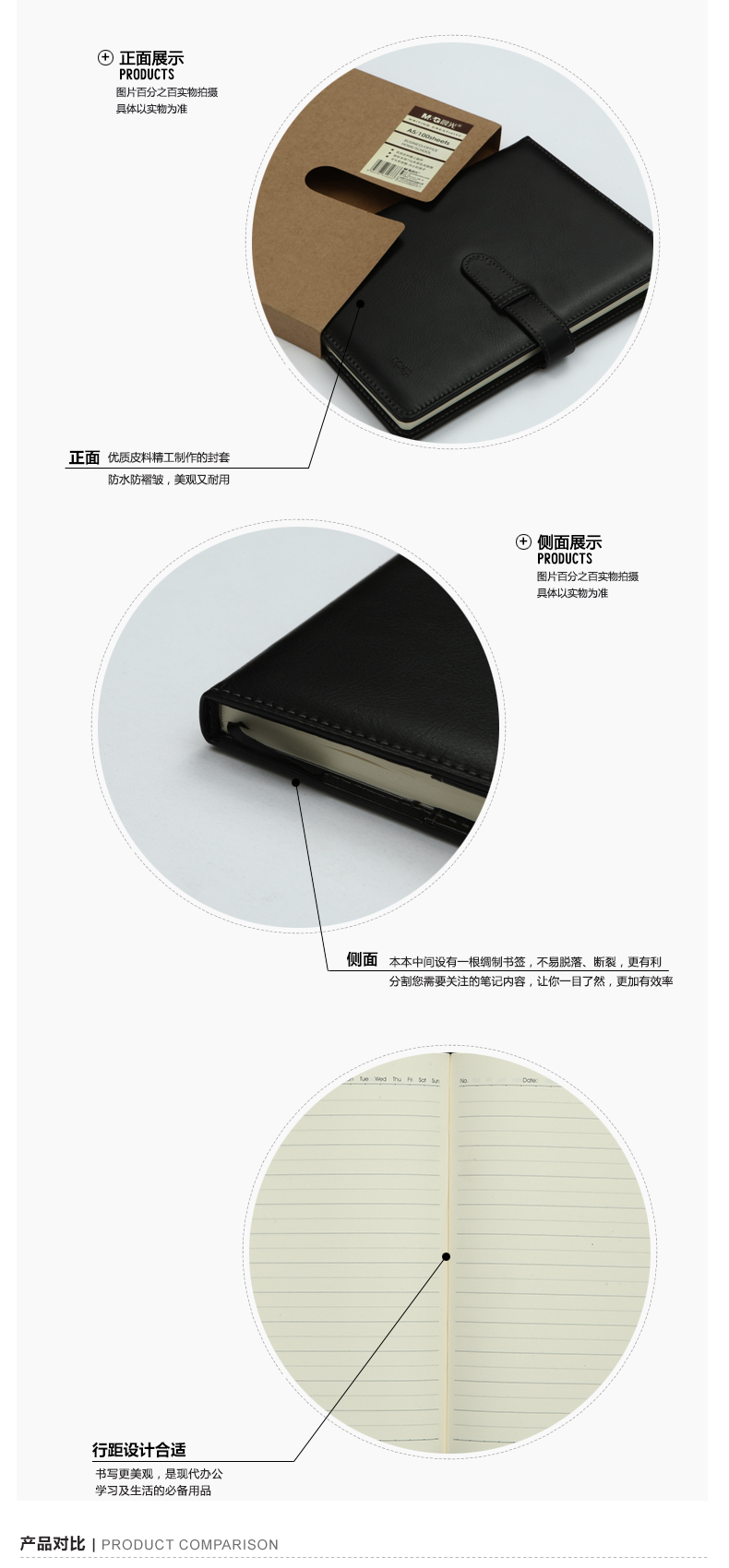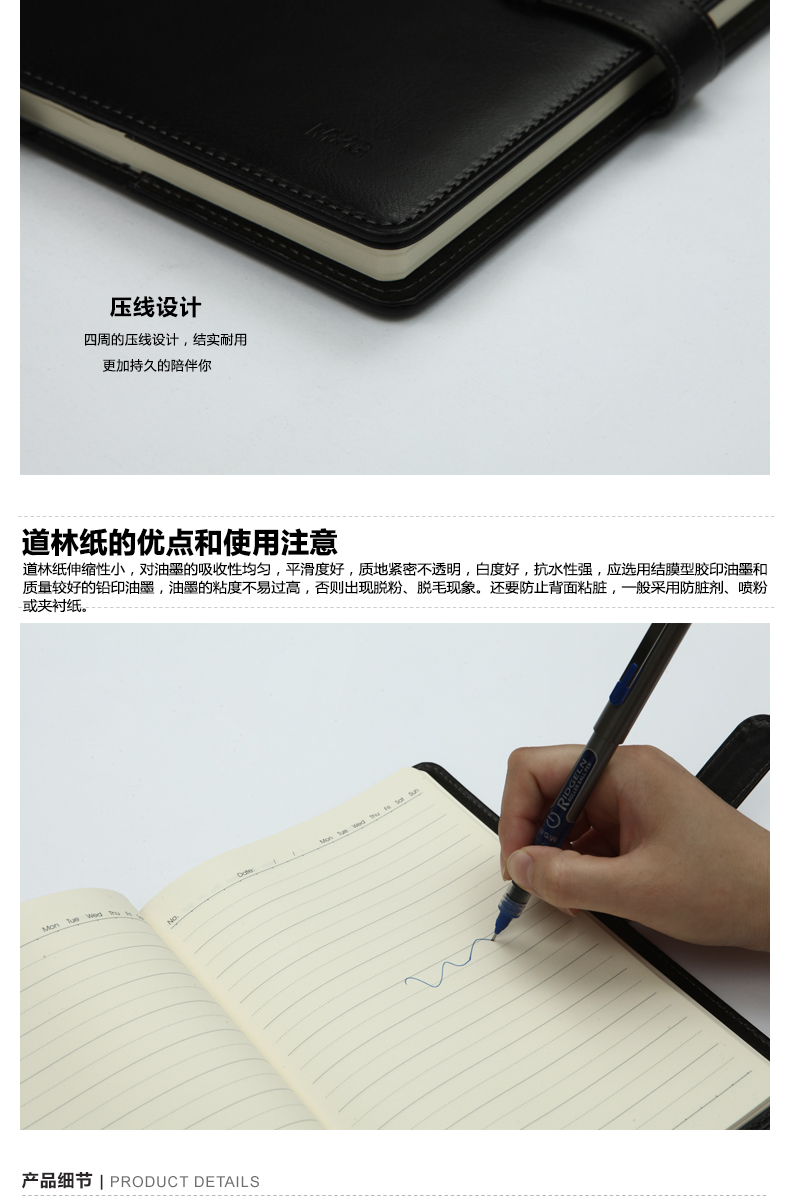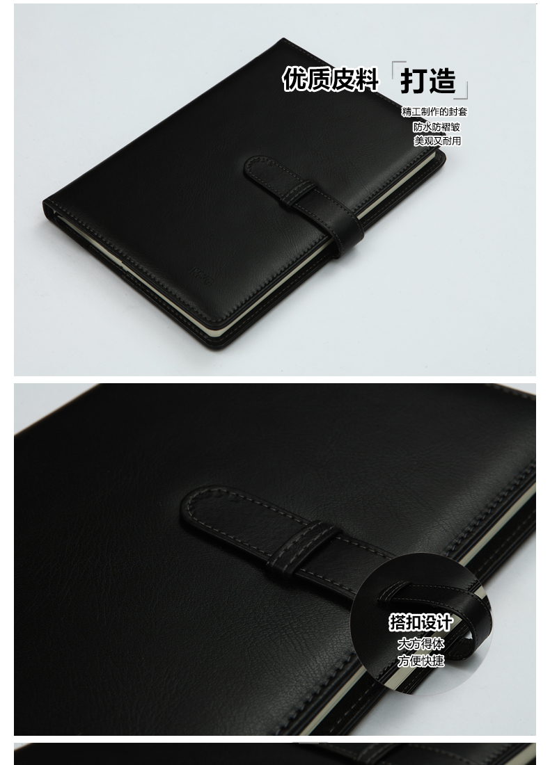采用高档皮料,手感柔软舒适,书口搭扣设计可夹笔