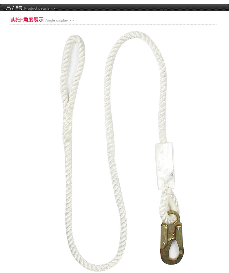 吸收部分冲击能量,缓冲系绳必须和一套完整的防坠落装置配合使用。