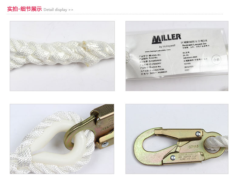 三股绳限位系绳绳直径12 毫米,配有1 个抓钩和1个连接环,2米