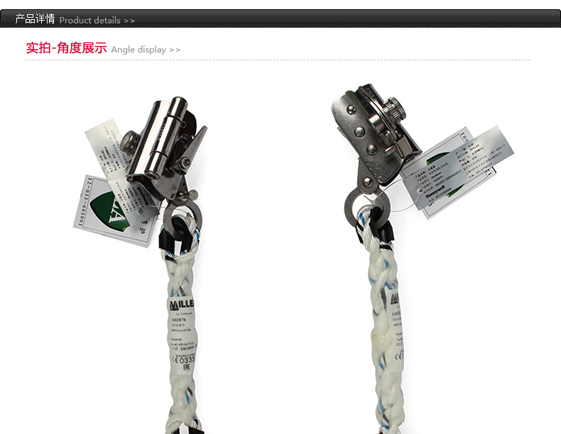 垂直方向自动锁紧,无须人工干预,可在缆绳上自由滑动;