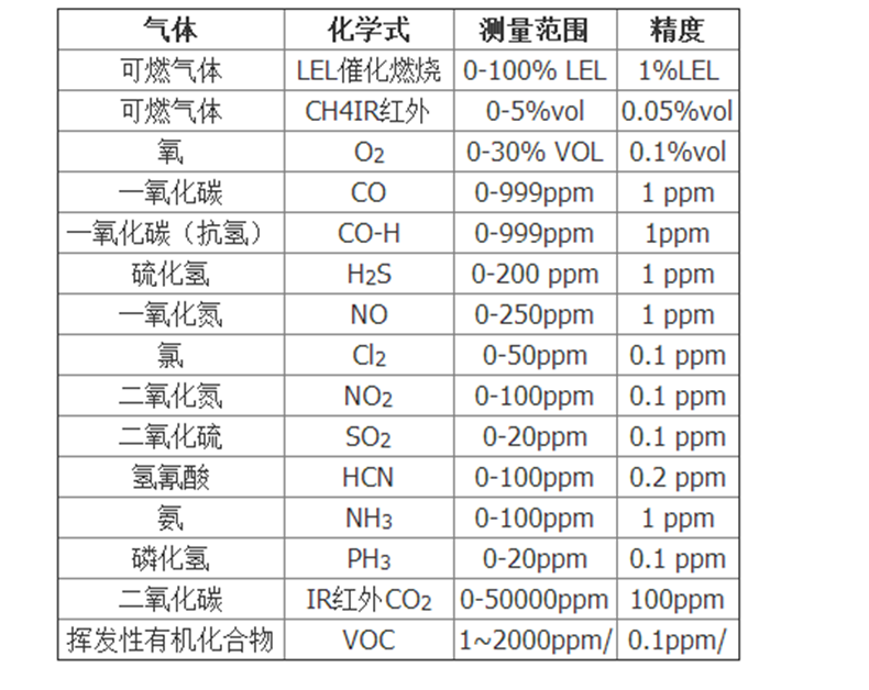 传感器包含氧气,可燃性气体,挥发性有机化合物蒸汽和多种有毒有害气体