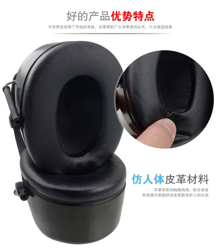 外周用仿皮包边,佩带卫生、安全、柔软舒适,隔音效果良好。每一个耳杯内部都为双层构,人性化设计,佩带于颈后