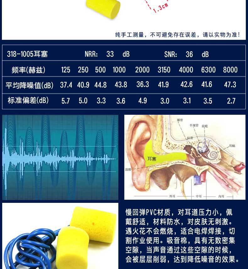 ●慢回弹PVC材质,对耳道压力小,佩戴更舒适