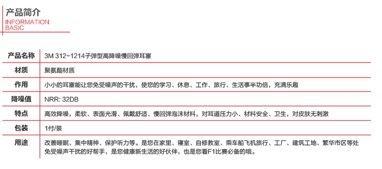 | 3M 312-1214 子弹型高降噪慢回弹耳塞 |