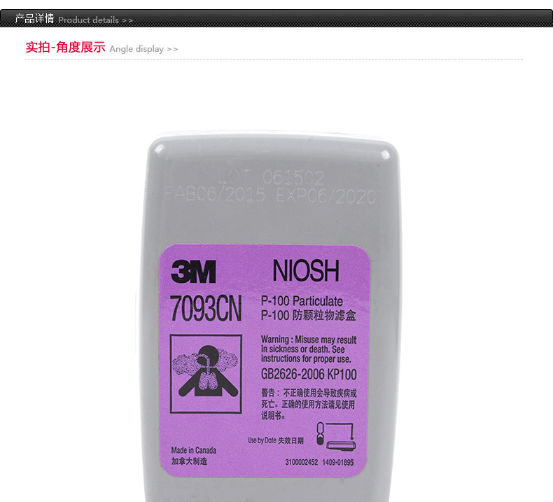 【型 号】:7093CN P100颗粒物滤尘盒