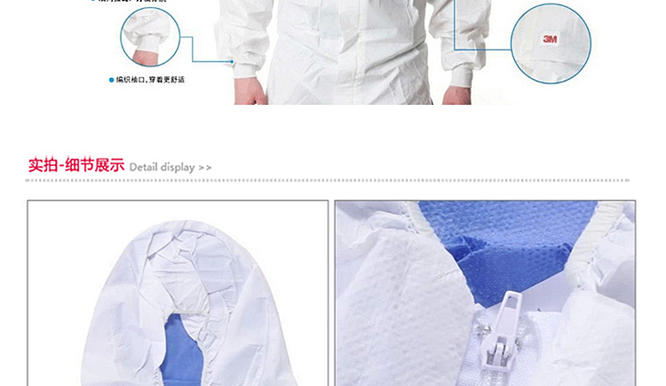 采用双材料独特设计,背部全部透气,前面化学阻隔性好,低纤维掉落,三片头罩设计,结合高效防护和舒适透气性;