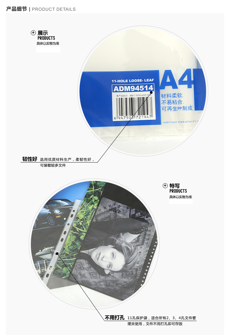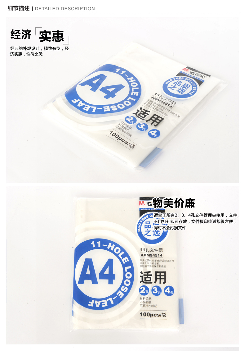 晨光11孔保护袋活页ADM94514(338*282*397mm)包装100/2000/4000