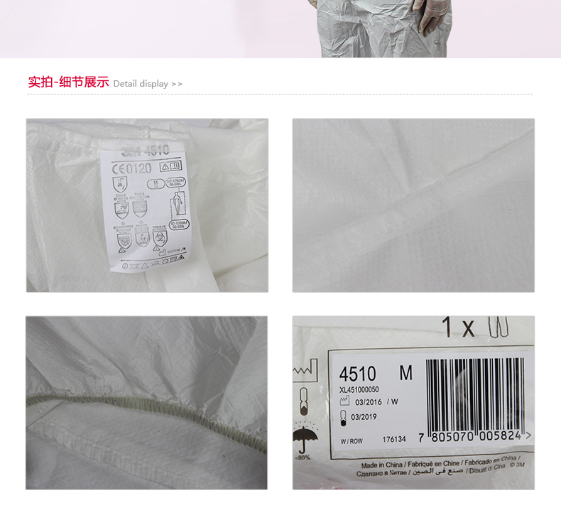 防护材质经过抗静电处理,适合应用在电子等需静电控制的领域;有效防护颗粒物( 第五类防护) 及液体有限喷溅(第六类防护)