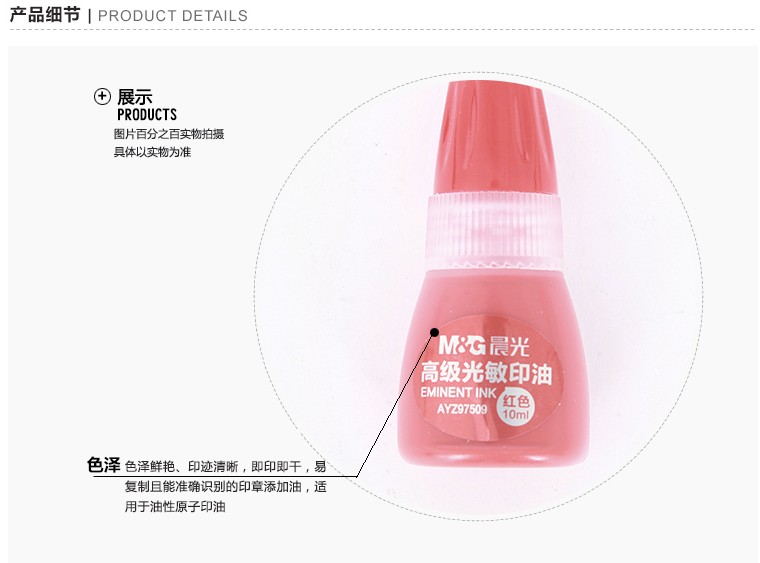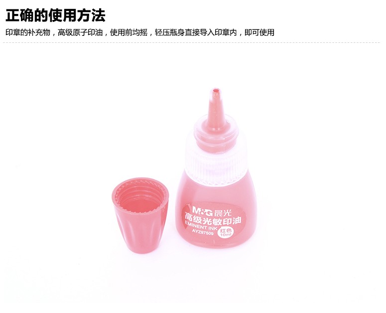 适用于各类办公光敏印章添加印油,印油具有不易沉降,颜色鲜艳,色密度高的特点