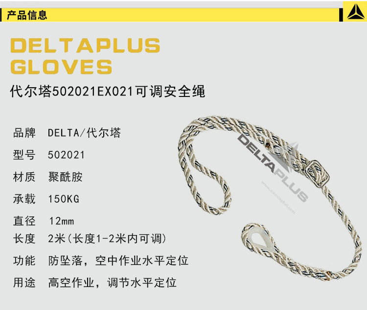 >> 代尔塔502021 EX021可调安全绳高空作业坠落防护抢险救援抢修