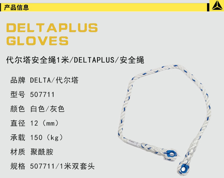 >> 代尔塔507711 LO 007100安全绳1米高空作业坠落防护电力抢修
