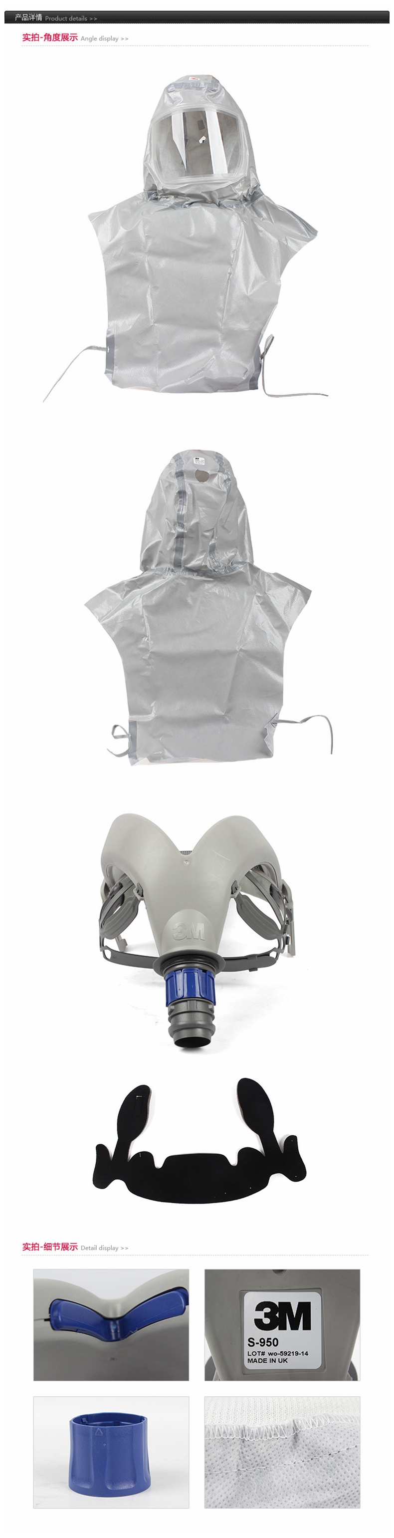 电池电量LED灯显示,集头面部,呼吸,听力防护于一体,方便使用维护,