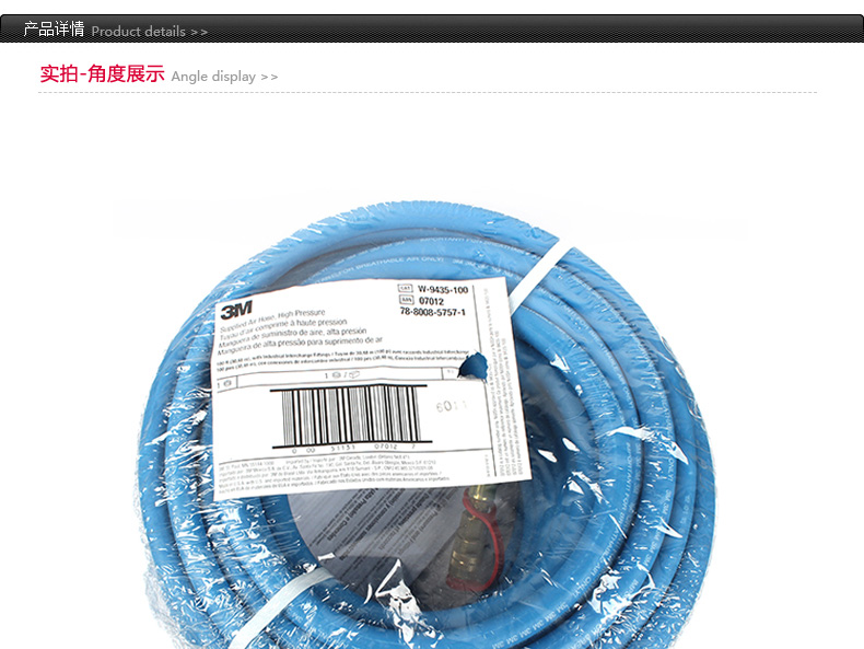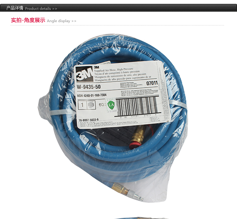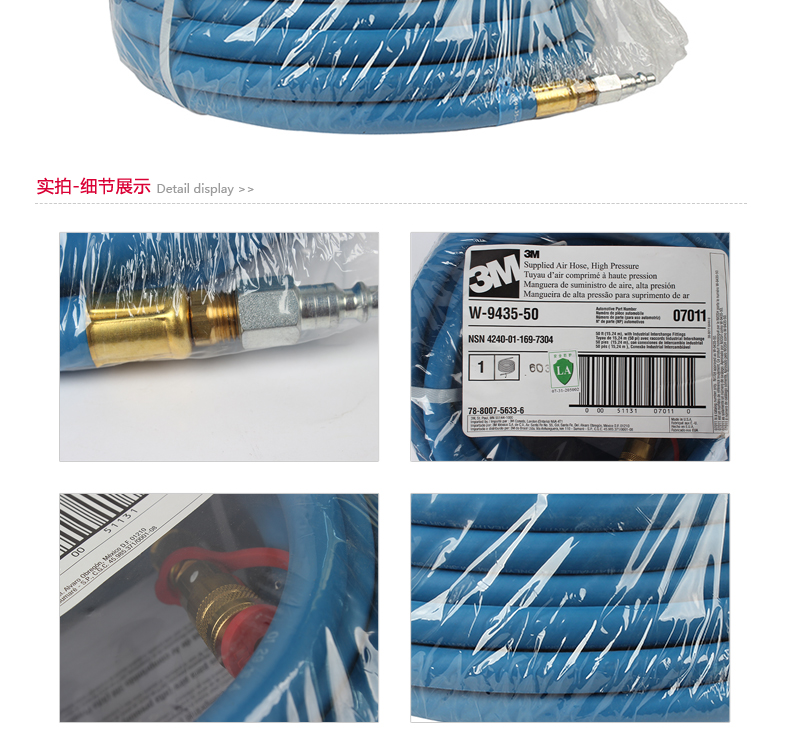 长管供气呼吸系统用压缩空气管, 将压缩空气送往流量调节阀, 长度: 25英尺或7.6米,可三根连接使用。