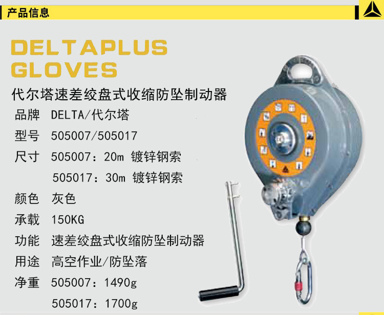 | 代尔塔505007/505017绞盘式防坠制动器速差收缩防坠器防坠落 |