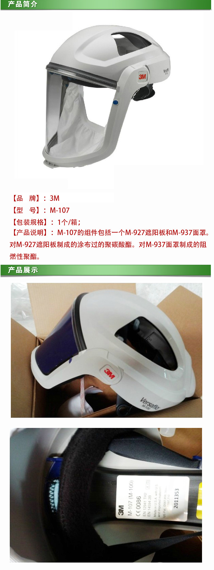M-107的组件包括一个M-927遮阳板和M-937面罩;