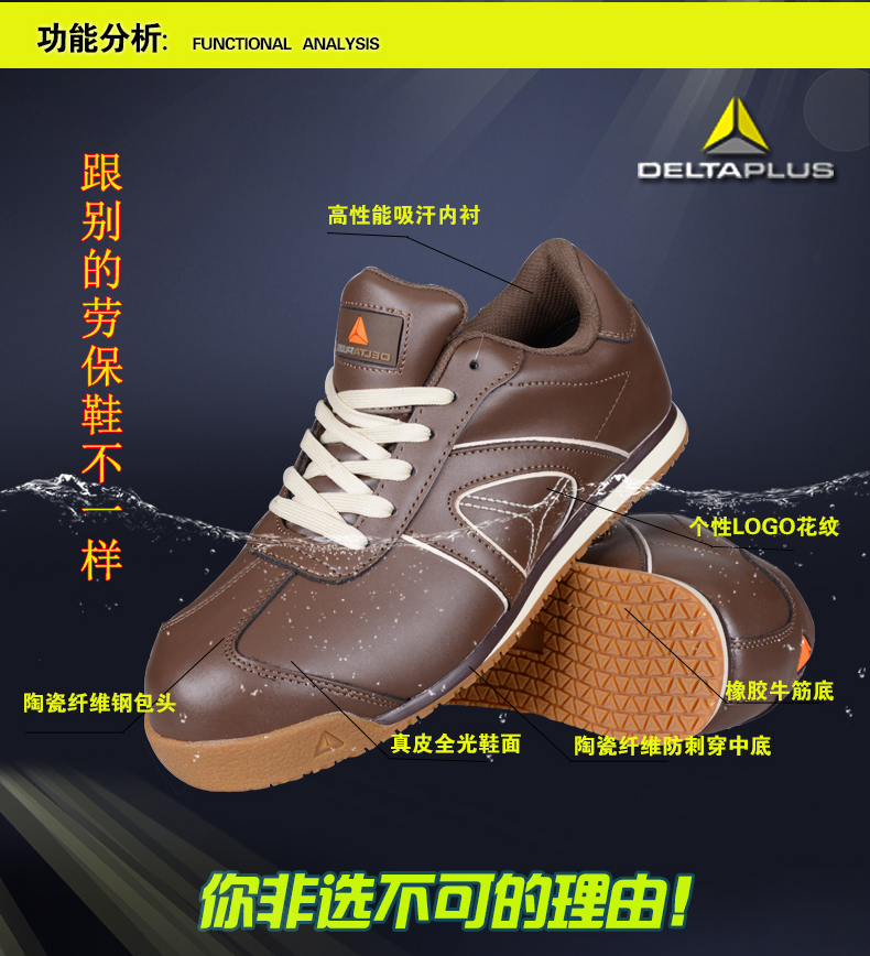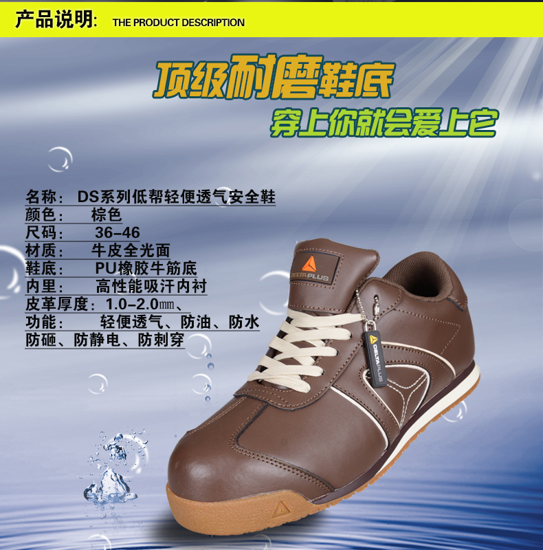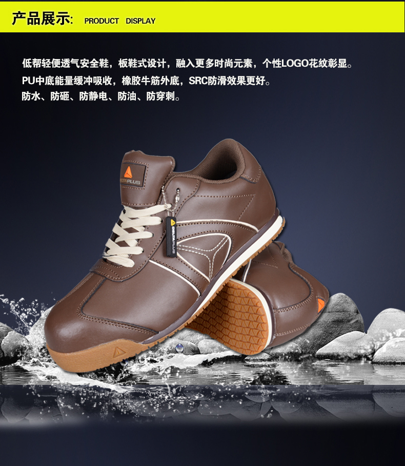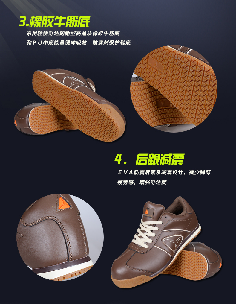 具备防砸、防静电、防油、防刺穿功能,是安全鞋中重量非常轻的款型。