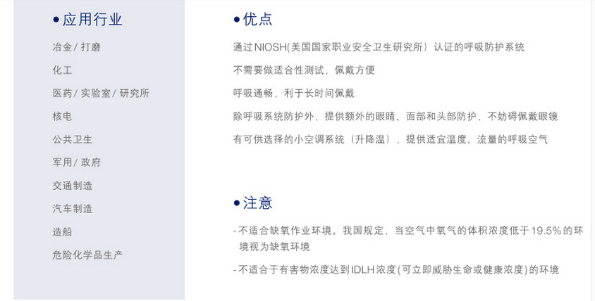 通过NIOSH(美国国家职业安全卫生研究所)认证的呼吸防护系统,不需要做合适性测试,佩戴方便。
