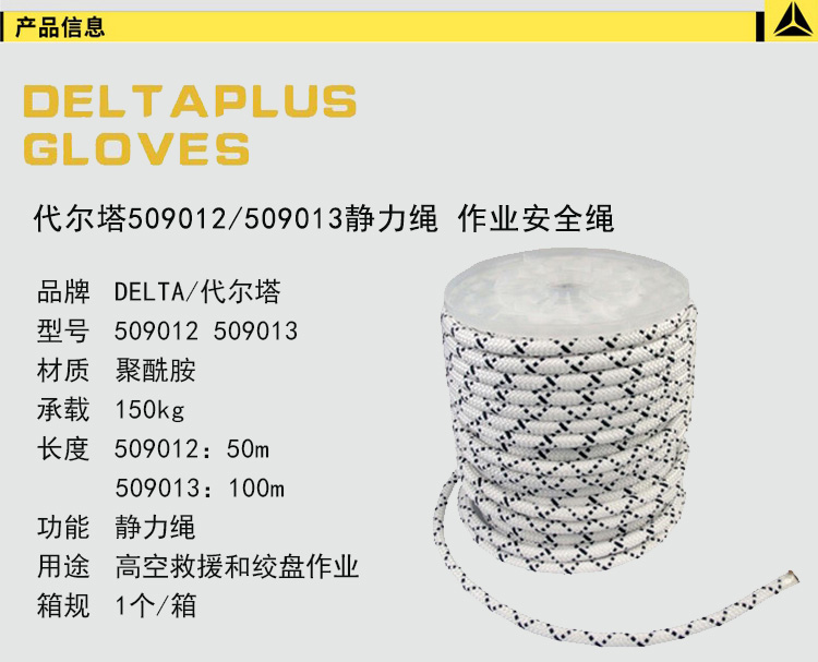 | 代尔塔509012/509013静力绳聚酰胺材质消防救援安全绳防坠落 |