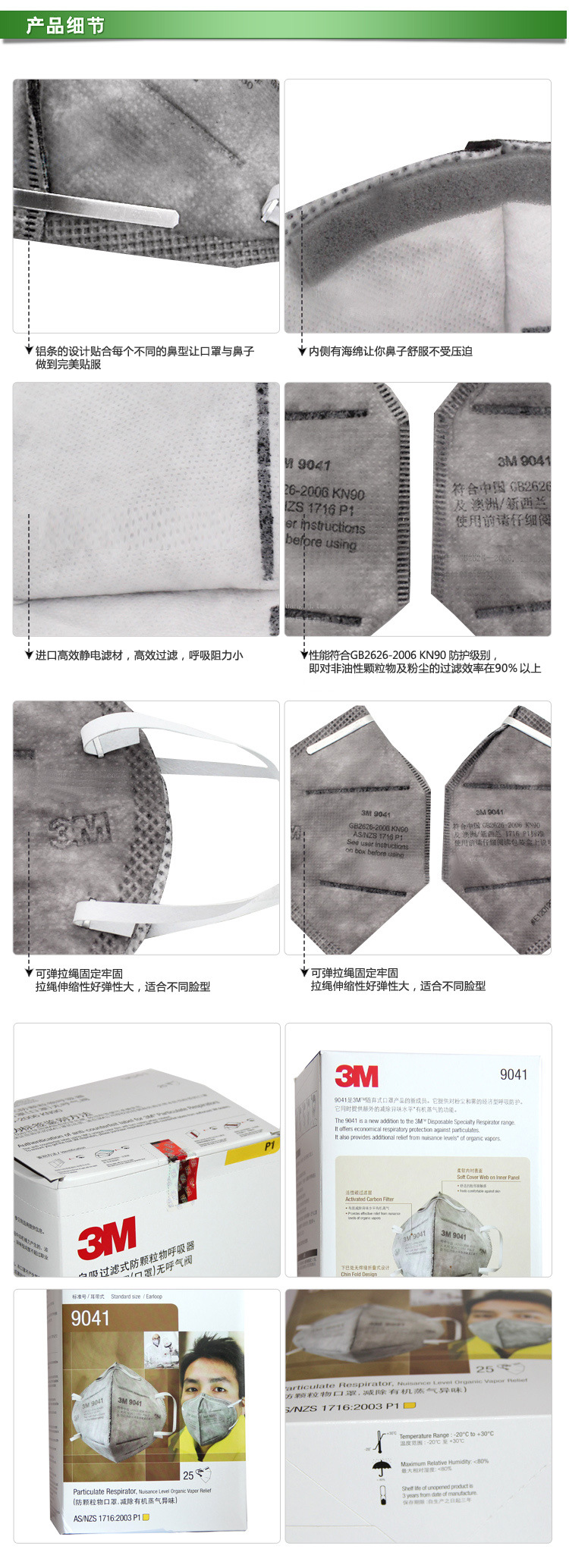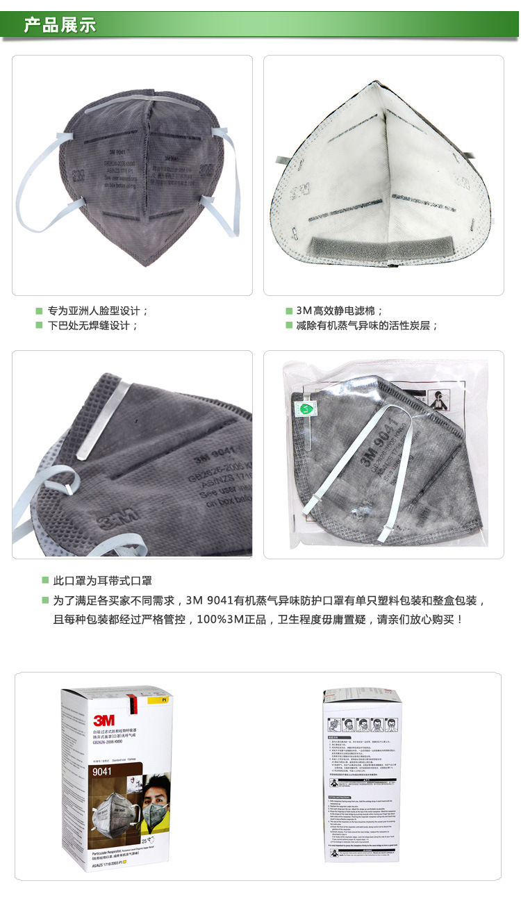 | 3M 9041 有机蒸气异味及防颗粒物 呼吸防护 活性炭口罩(耳带式) | |||