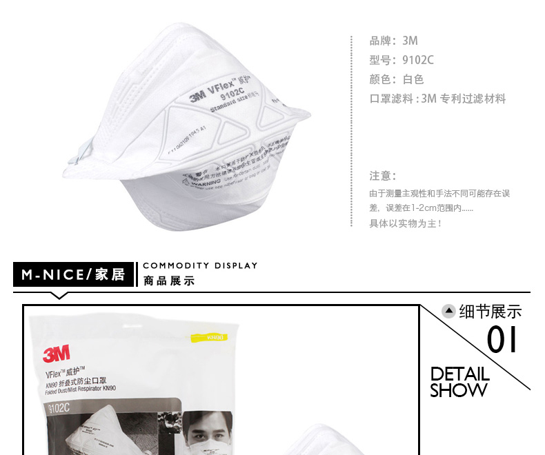 | 3M 9102C KN90头戴式威护防尘口罩(头戴式) |