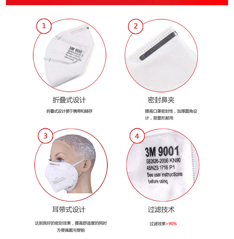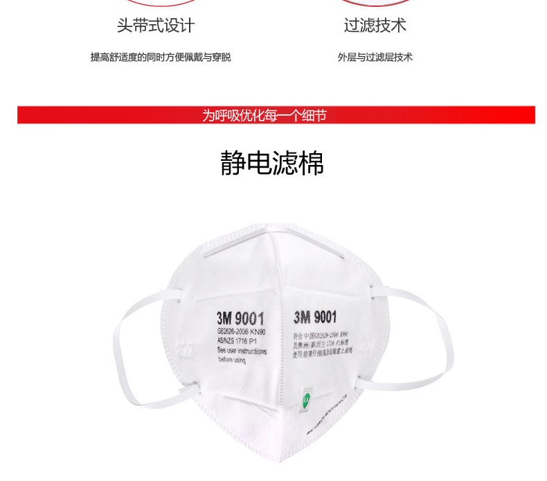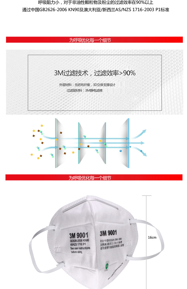 | 3M 9001/9002 KN90防护口罩双片装/环保装 防尘防雾霾PM2.5 | |||
