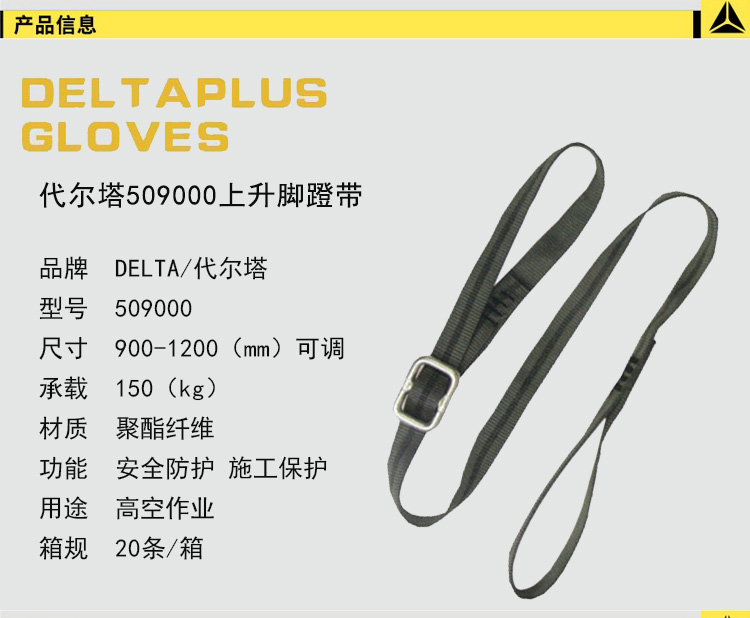 | 代尔塔509000上升脚蹬带攀岩绳索高空作业保护安全防护安全带 |